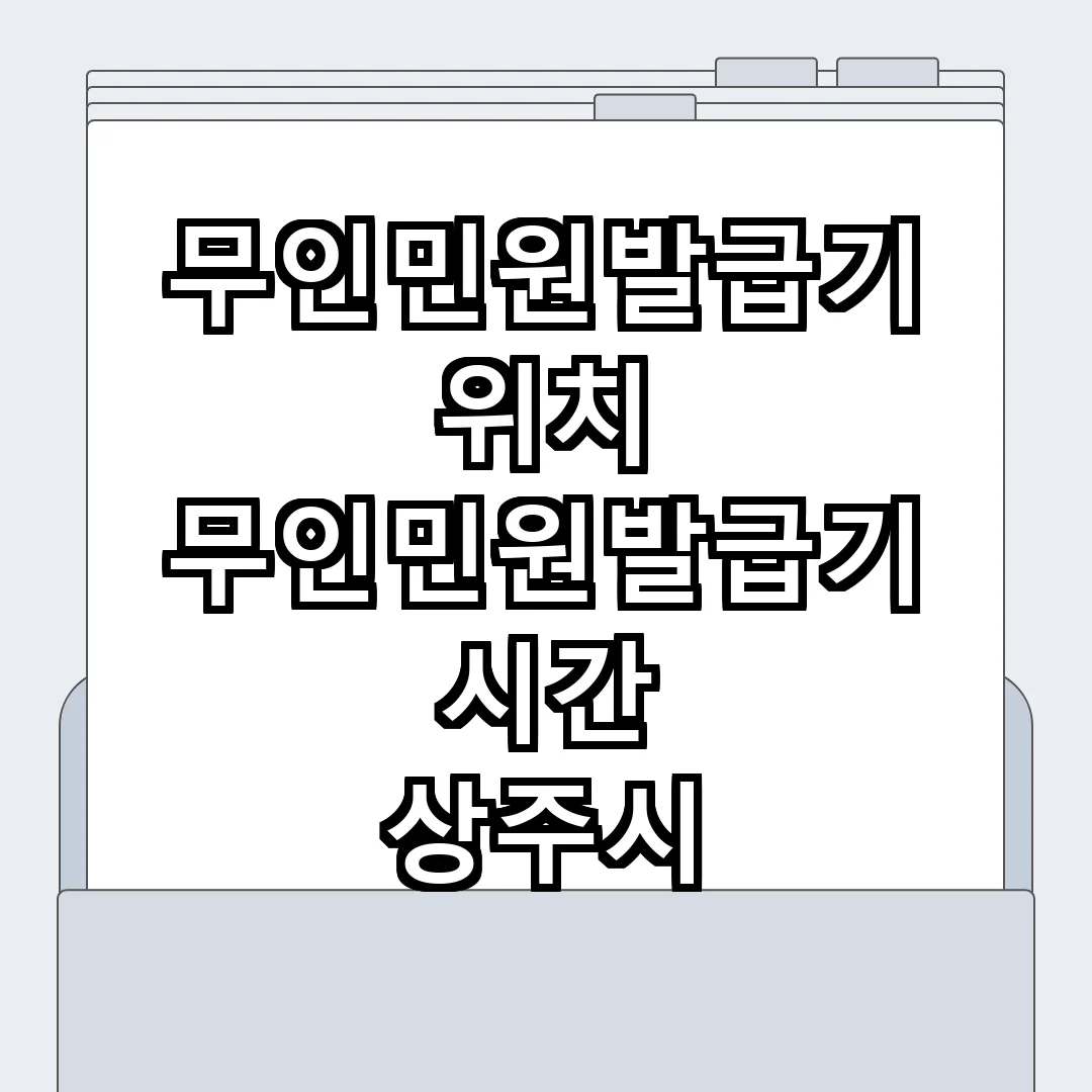 상주시 내 무인민원발급기는 시민들이 필요로 하는 다양한 민원 서류를 쉽게 발급받을 수 있도록 설치되어 있습니다. 일반적으로 상주시의 주요 공공기관, 도서관, 대형마트 등 사람들이 많이 방문하는 장소에 위치하고 있습니다. 이러한 발급기를 이용하면 시간과 장소에 구애받지 않고 필요한 서류를 간편하게 발급받을 수 있습니다.