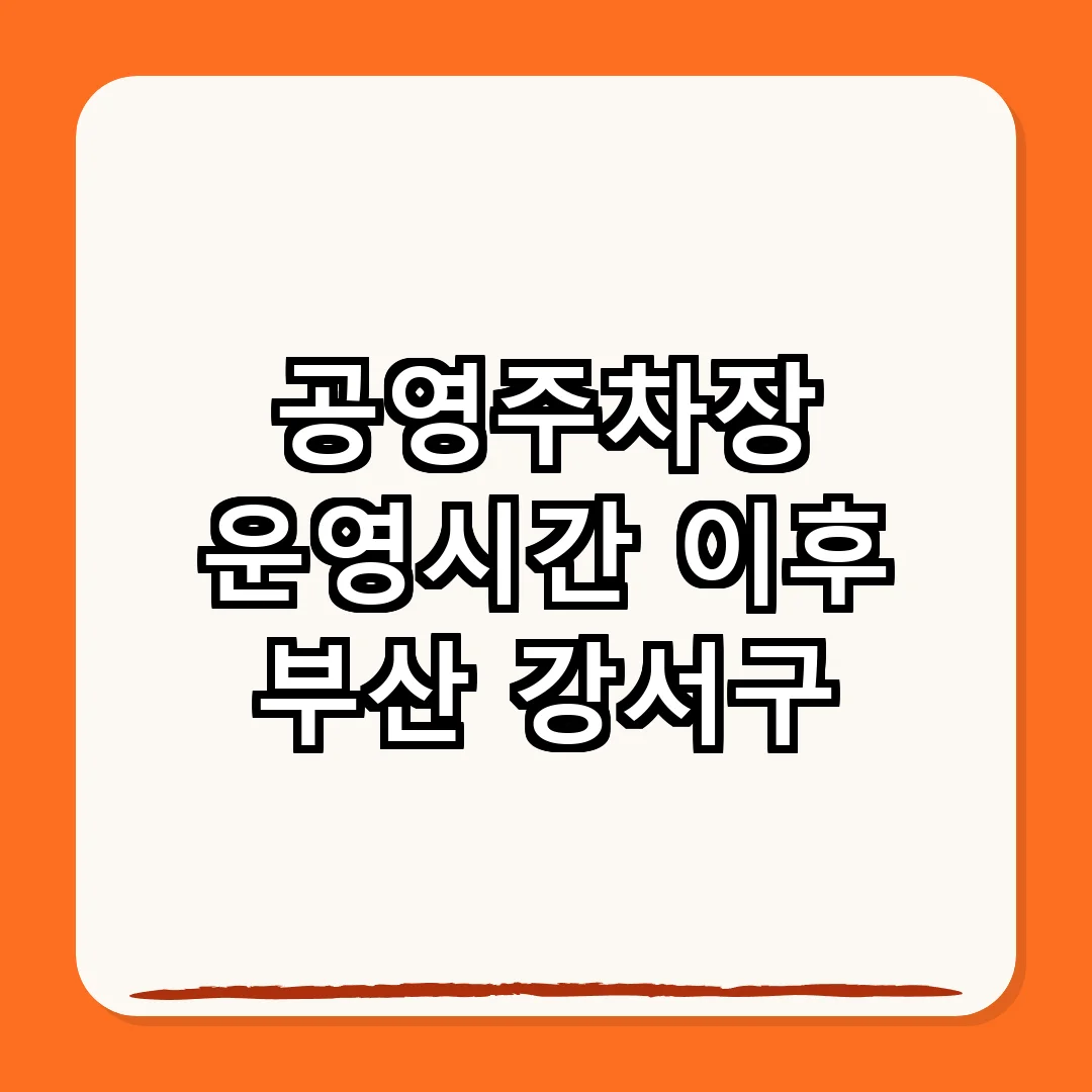 부산 강서구의 일부 공영주차장은 운영시간 이후에도 차량 출입이 가능한 무인 시스템을 도입하고 있습니다. 이 경우 사전에 결제를 완료해야 하며, 출차 시간도 고려해야 합니다. 하지만 모든 주차장이 이러한 시스템을 갖춘 것은 아니니, 사전에 확인이 필요합니다.