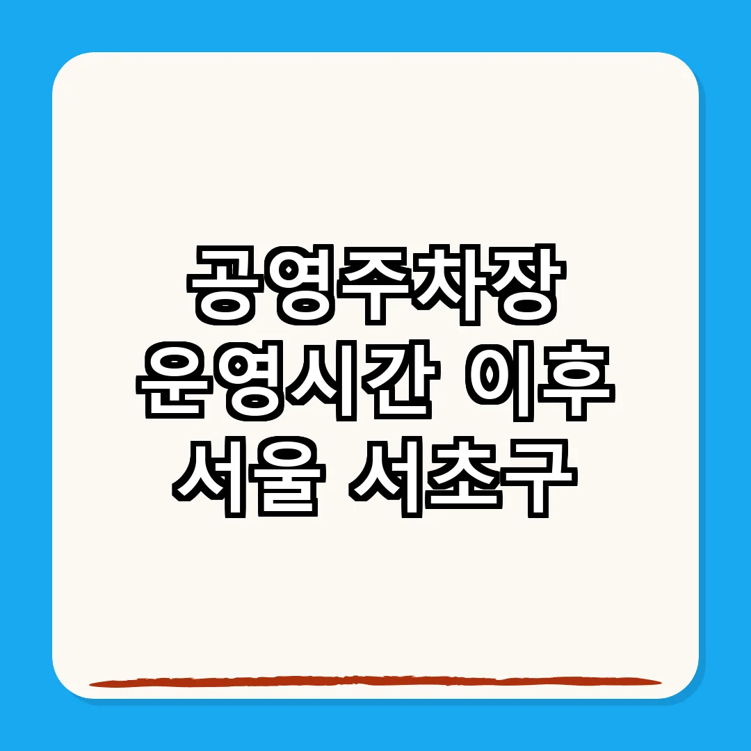 서울 서초구의 일부 공영주차장은 운영시간이 종료된 후에도 차량 출입이 가능합니다. 단, 이 경우 차량 소유자는 사전 결제를 마쳐야 하며, 출차 시간을 고려해야 합니다. 모든 주차장이 이와 같은 시스템을 갖춘 것은 아니므로, 이용하기 전 반드시 확인해야 합니다.