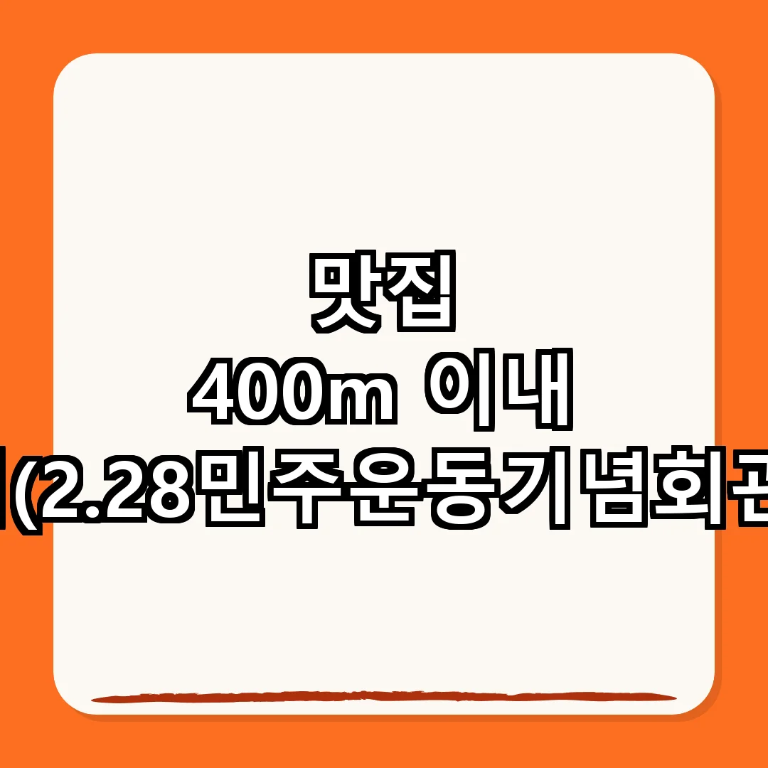 맛있는 음식을 즐기며 소중한 사람들과의 시간을 보내는 것은 삶의 큰 기쁨입니다. ‘명덕(2.28민주운동기념회관)역’ 주변에는 다양한 맛집들이 있어 선택의 폭이 넓습니다. 이번 포스팅에서는 이 지역에서 추천하는 외식 메뉴와 각 음식의 매력을 소개하겠습니다. 함께 맛있는 시간을 만들어 보세요. 명덕(2.28민주운동기념회관)역 맛집 정보 더보기 명덕(2.28민주운동기념회관)역 맛집 정보 더보기 명덕(2.28민주운동기념회관)역 맛집 정보 더보기 명덕(2.28민주운동기념회관)역 근처의 한식 … 더 읽기
